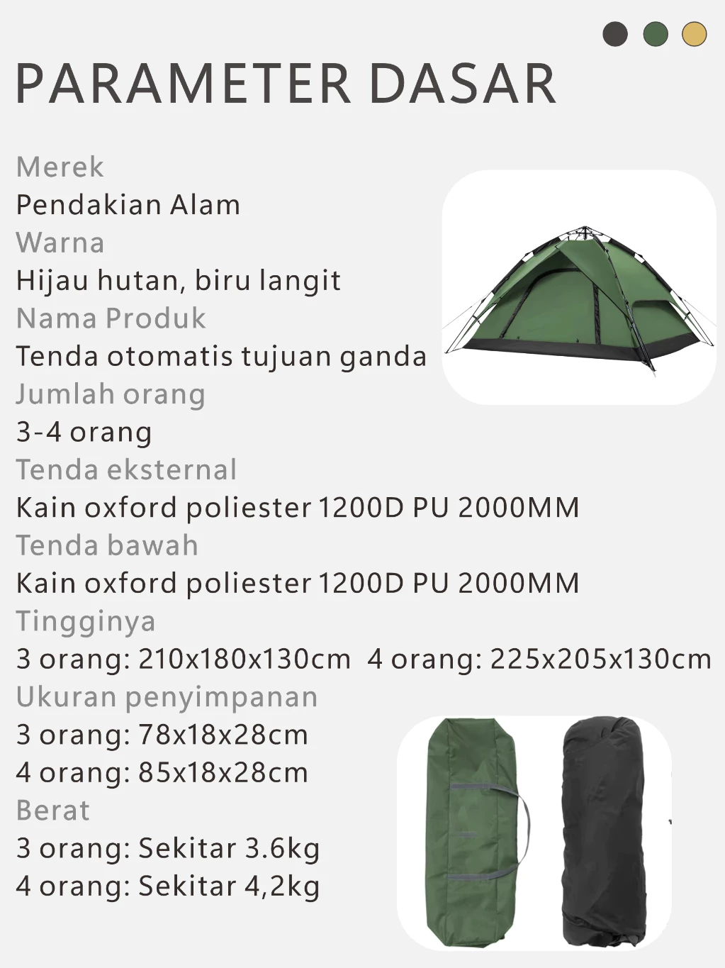 Dapatkan Spesifikasi Harga WTHB Outdoor Tenda Kemah Camping Nyaman 3-4 Orang Otomatis Tenda Lipat Portable Tenda Gunung Waterproof Produk Terbaik dari